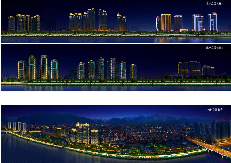 閩江兩岸(閩江大橋-會展島)夜景提升燈光工程設備及安裝項目位于美麗的福建省福州市臺江區和倉山區之間的閩江。以提煉紙傘、漁燈、脫胎漆器等多種元素為表現手法,體現民俗風情;以呈現現代科技和現代生活的發展為主,體現人文和科技的對接;運用了祥云、臥虹等多種元素為表現手法,營造人間的仙境。通過對歷史人文展現、海洋文化展現、地域特色文化展現,配合懷舊、流暢、寧靜、優雅等燈光配色,組成一卷神秘和充滿意境的燈光畫卷,重點渲染“山海文舟城”的主題。
